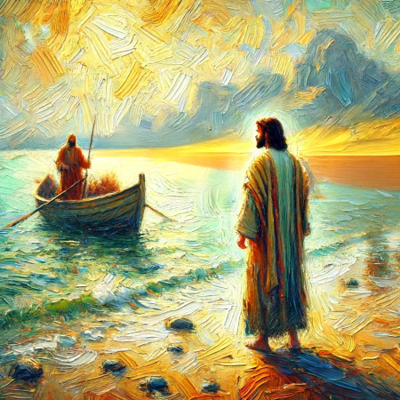 R: Můj Pane, dnes i na mne se díváš, tvoje ústa vyslovila mé jméno, svoji loďku na břehu zanechávám, spolu s tebou nový začít chci lov.