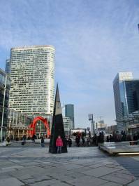 La Défense [la defánc] je supermoderní čtvrť plná mrakodrapů, kde v kancelářích pracuje kolem 40 000 osob. Lidé zde ale moc nebydlí, takže po večerech tady příliš legrace není. Čtvrť začala vznikat v 50. letech 20. století. Zajímavým monumentem je 110 m vysoký skleněný a mramorový oblouk, který slouží jako administrativní budova i jako sídlo ministerstva.