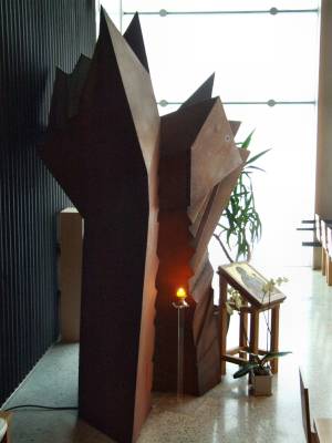 Zvlášť prostor vlastního kostela v patře je mimořádně působivý. Stránky kostela www.catholiques.aladefense.cef.fr
