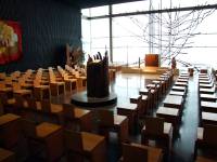 2.) vlastní kostel v patře, kde se slouží mše a je místem pro modlitbu a