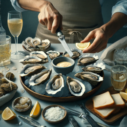 ÚSTŘICE - Populární francouzský předkrm a zejména o vánočních svátcích. Podávají se zásadně čerstvé v dobře uzavřených mušlích /6 nebo 12 ks/. Otvírají se speciálním ústřicovým nožem. Opláchnuté zaledované ústřice se uchopí levou rukou do utěrky /ubrousku/ a opatrně se páčí, po otevření se opatrně pokládají na mísu nebo talíř, aby nevytekla šťáva. Podávají se s citrónem na pokapání a k krajíčky bílého chleba s máslem. K tomuto pokrmu se nejlépe hodí víno suché, chlazené Muscadet a Chablis, a nebo šampaňské.