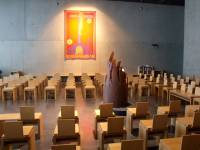 2.) vlastní kostel v patře, kde se slouží mše a je místem pro modlitbu a